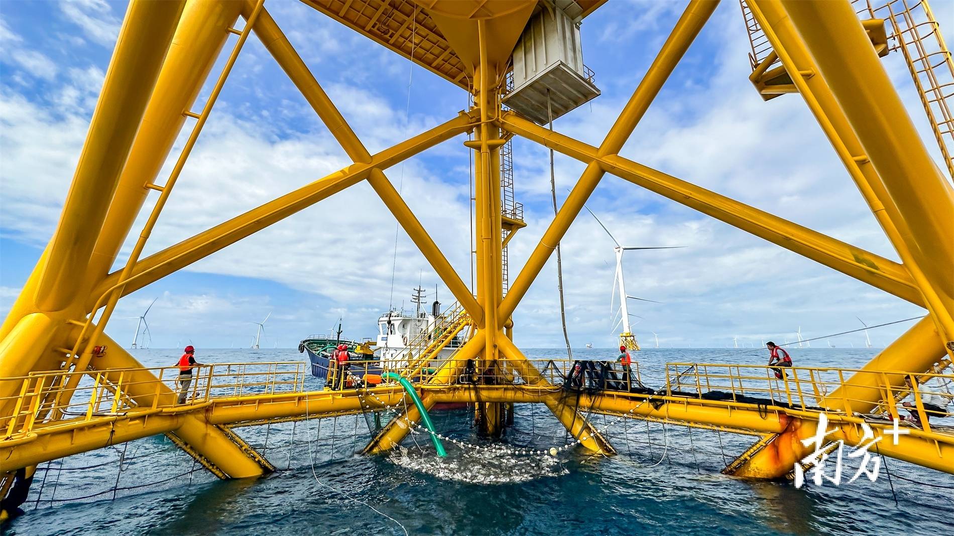 近年来,阳西积极打造“粤海粮仓+蓝色能源”新样板,大力支持有实力的龙头企业参与海洋牧场建设。2023年,明阳阳洲四海上风电场建成了全球首台“导管架风机+网箱”风渔融合一体化养殖装备“明渔一号”,实现了从探索试验到规模化发展的重大跨越。